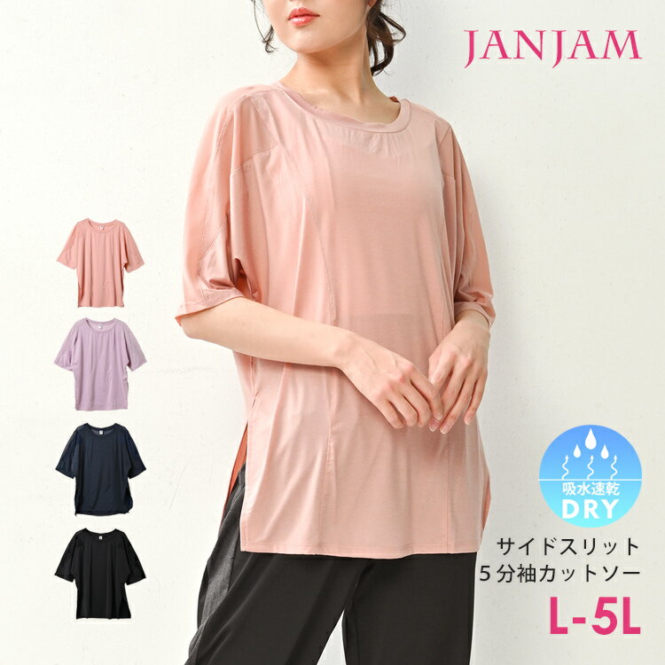 メール便対応 大きいサイズ レディース カットソー 5分袖 メッシュ素材切り替え サイドスリット トップス スポーツウェア LL/3L/4L/5L ゆったりサイズ ぽっちゃり女子 プラスサイズ