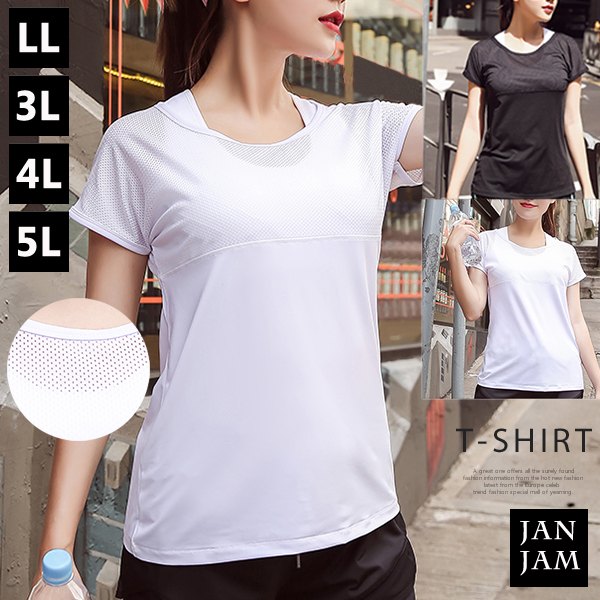 メール便対応 大きいサイズ レディース トップス Tシャツ 半袖 メッシュ上下切り替え スポーツウェア ジムウェア フィットネス LL 3L 4L 5L ゆったりサイズ ぽっちゃり女子 プラスサイズ