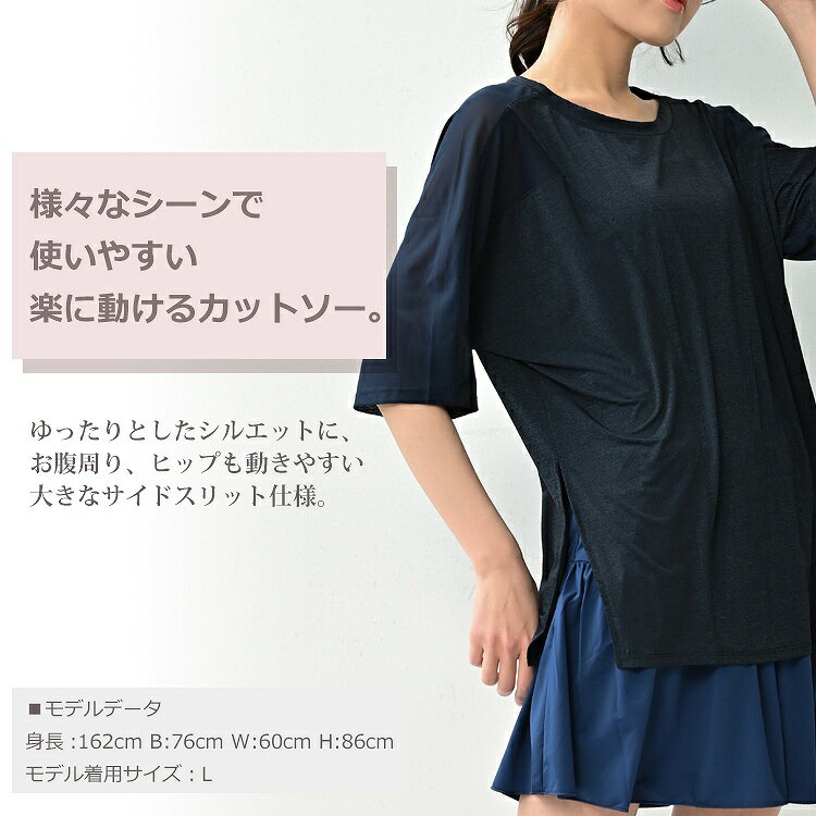 大きいサイズ レディース カットソー 5分袖 メッシュ素材切り替え サイドスリット トップス スポーツウェア ジム フィットネス ランニングウェア おうちヨガ 春 夏 秋 冬 黒 紺 紫 LL 3L 4L 5L 13号 15号 17号 19号 sp-all-tp0117さらっとひんやり生地。
