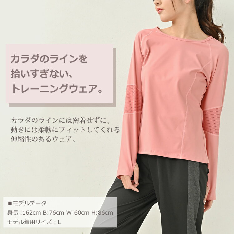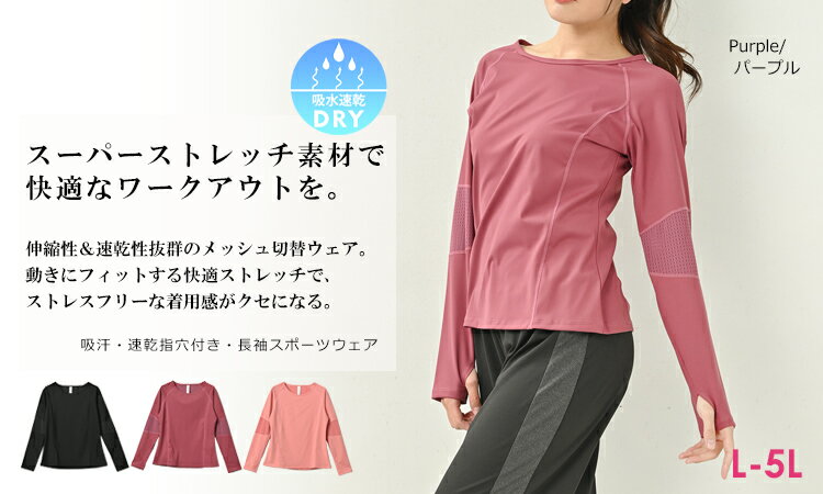 大きいサイズ レディース伸縮&速乾性抜群のメッシュ切替え長袖Tシャツ。